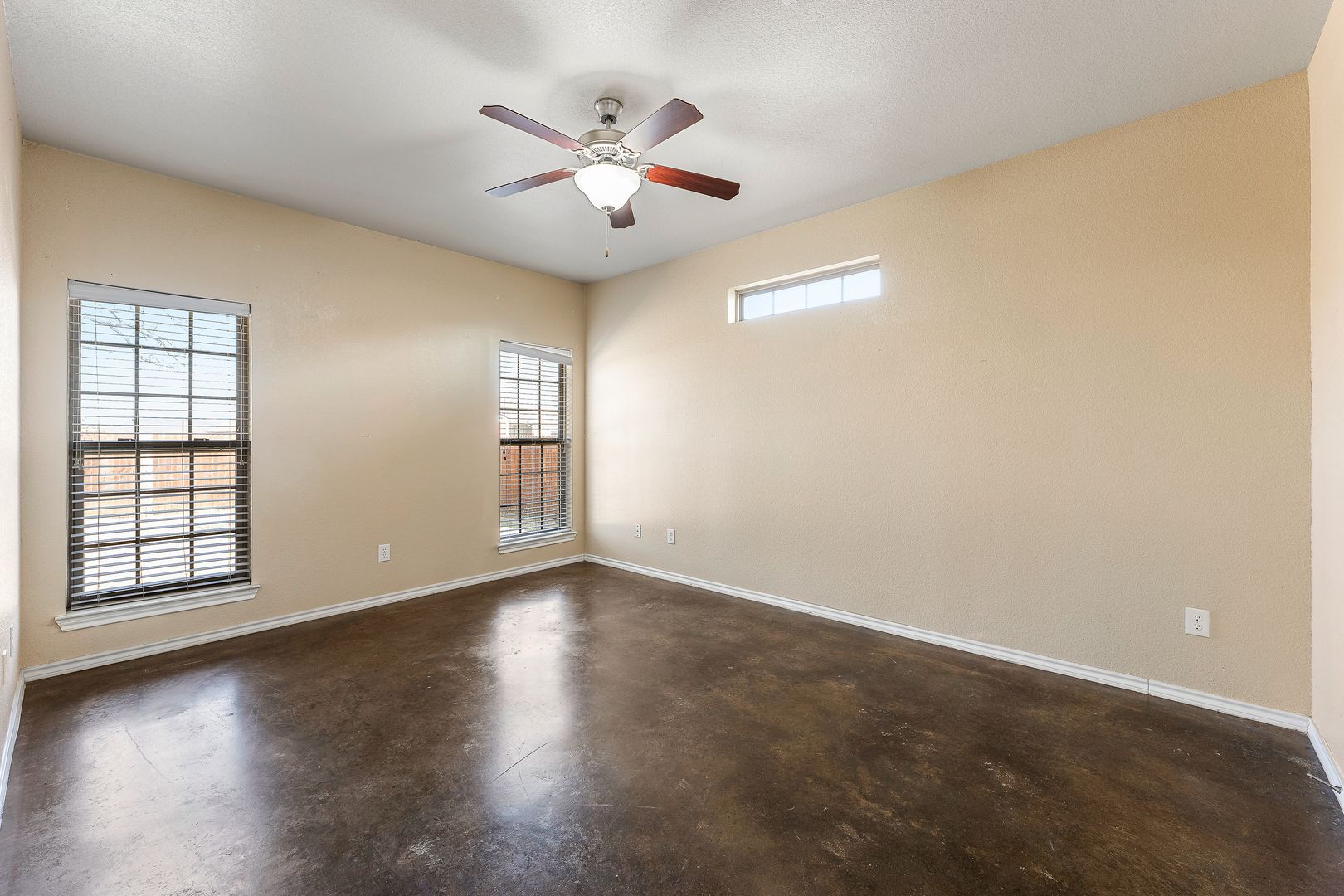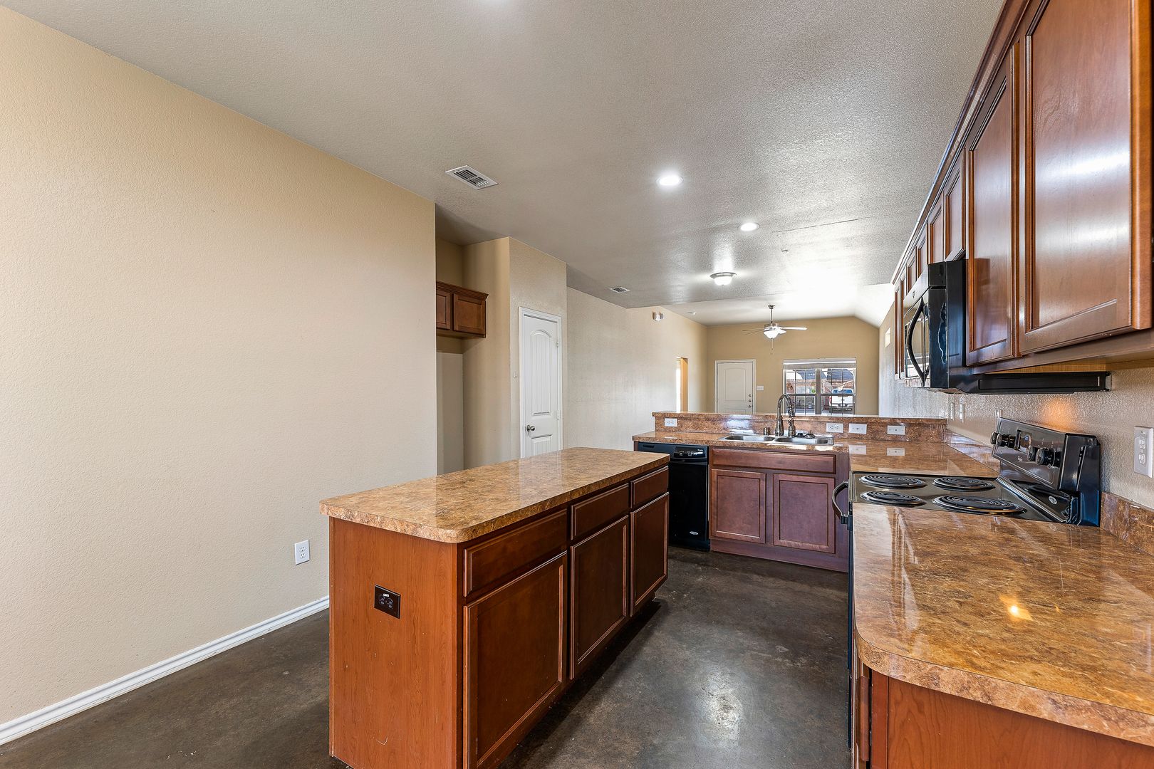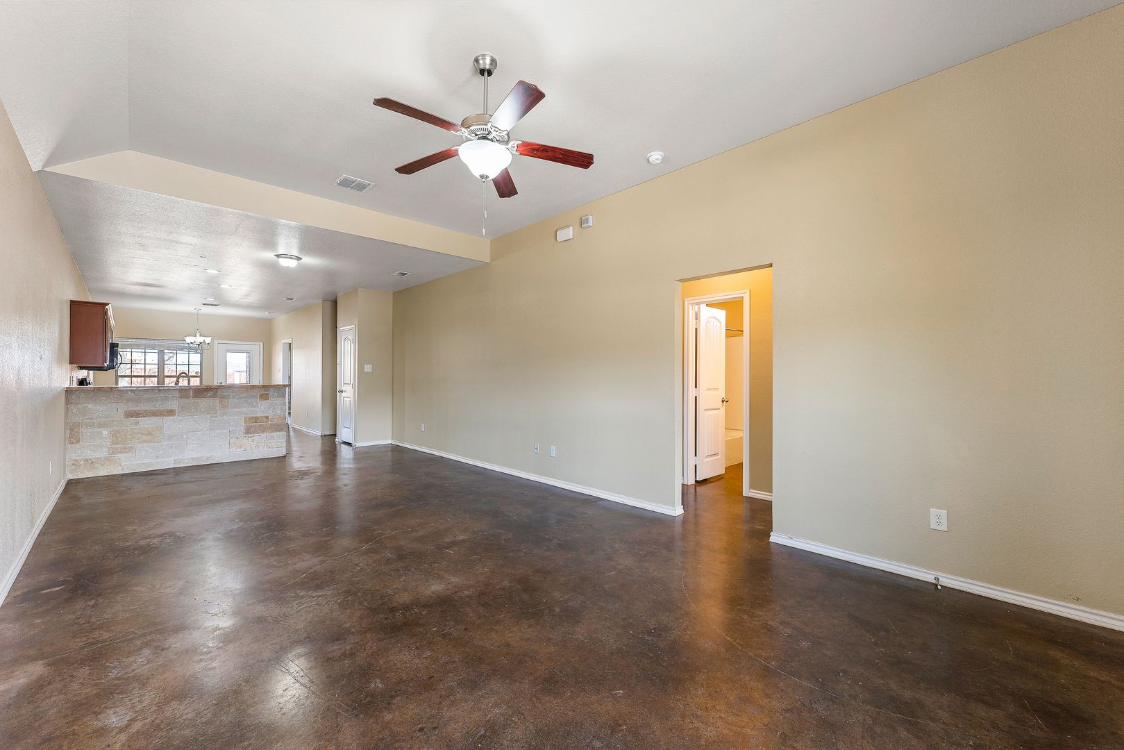 Stunning home close to the heart of Stephenville! Step inside to vaulted ceilings, stained concrete floors and a large open floor-plan. The kitchen boasts tons of storage with an island and breakfast bar! The main living area offers so much space to arrange dining and living. The master bedroom offers a large walk-in closet and private en-suite. The bedrooms are also set up with a split bedroom arrangement for additional privacy. There is a dedicated laundry room, garage, privacy fenced backyard and sprinkler system! Call us today for a tour!