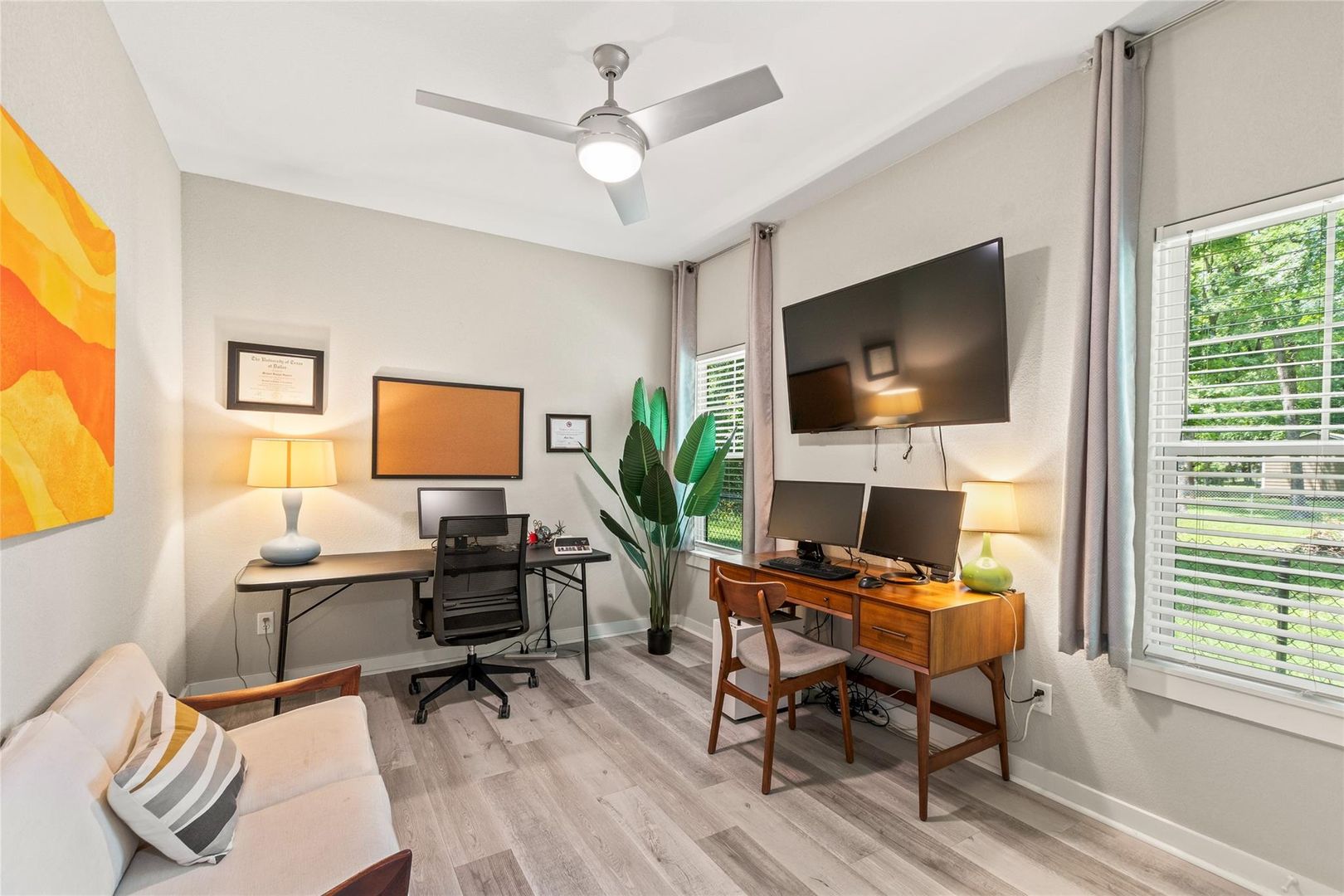 Welcome to this beautifully maintained home in the desirable lakeside community of Enchanted Oaks. Thoughtfully designed for both everyday living and entertaining, the open-concept layout is complemented by a split-bedroom floor plan and walk-in closets in every bedroom. A versatile bonus room provides the perfect space for a home office, media room, or playroom. Quality details include Marvin windows, a Trane HVAC system, Whirlpool stainless steel appliances, and a glass-enclosed shower in the primary suite. Outdoors, you’ll find a fenced area ideal for boat storage, along with a gas stub ready for a future outdoor kitchen. As a resident of Enchanted Oaks, you’ll enjoy exceptional community amenities including two boat launches, a saltwater pool, playground, trailer storage, and a soccer field—making this an ideal retreat for full-time living or weekend escapes at Cedar Creek Lake.