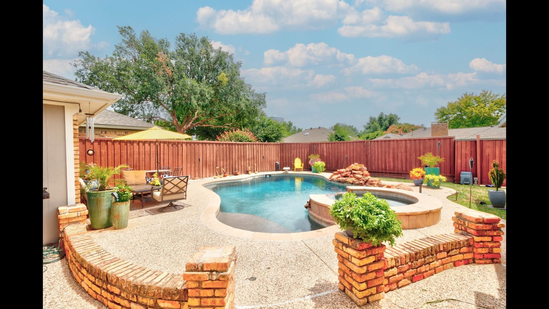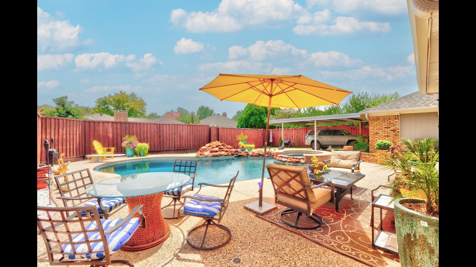 Stunning, updated 3-2-2. Gorgeous, fully enclosed large back yard has an 8 ft. board on board fence with a power gate. Two car garage plus two car covered carport. Lovely swimming pool and spa. Tons of outdoor entertaining space. Inside is a large living room with fireplace. Updated kitchen and baths. Formal dining could also be used as a 2nd living area or office. Easy care solid surface floors and SS appliances in kitchen. Located near hike and bike path, only 5 minutes to Baylor Heart Hospital and Medical City - Plano. Loads of shopping and dining nearby with easy access to the Bush Freeway and North Dallas tollway. Refrigerator, washer and dryer to remain. Tenants are responsible for lawn and pool maintenance. Pets are considered on a case by case basis.