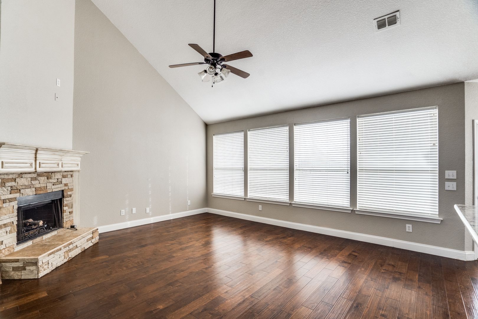Gorgeous two story home on lovely landscaped treed lot. This home features an open floor plan with primary suite and study down and three additional bedrooms up. Spacious living area with hardwood floors, soaring ceilings and stacked stone fireplace leads to large kitchen with island, granite countertops and stainless appliances. Nice sized fenced backyard for entertaining. Small dog negotiable with additional deposit.