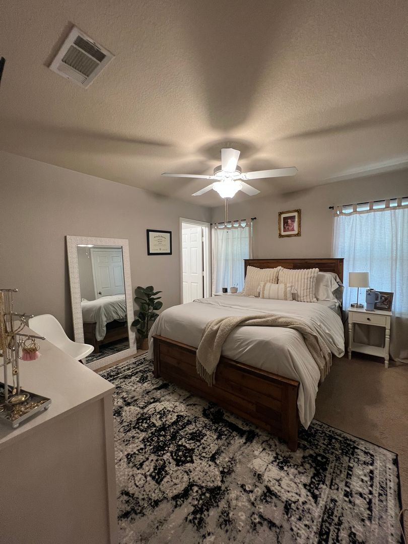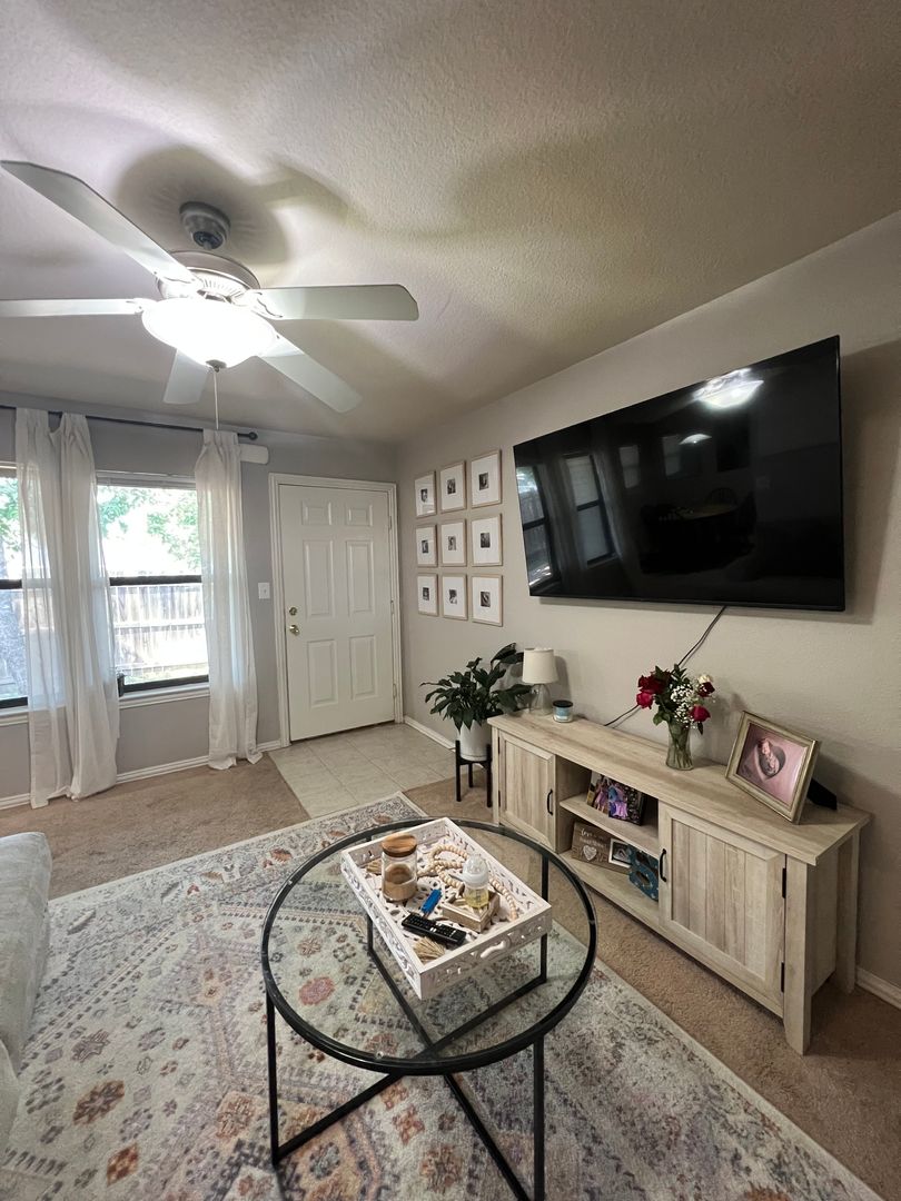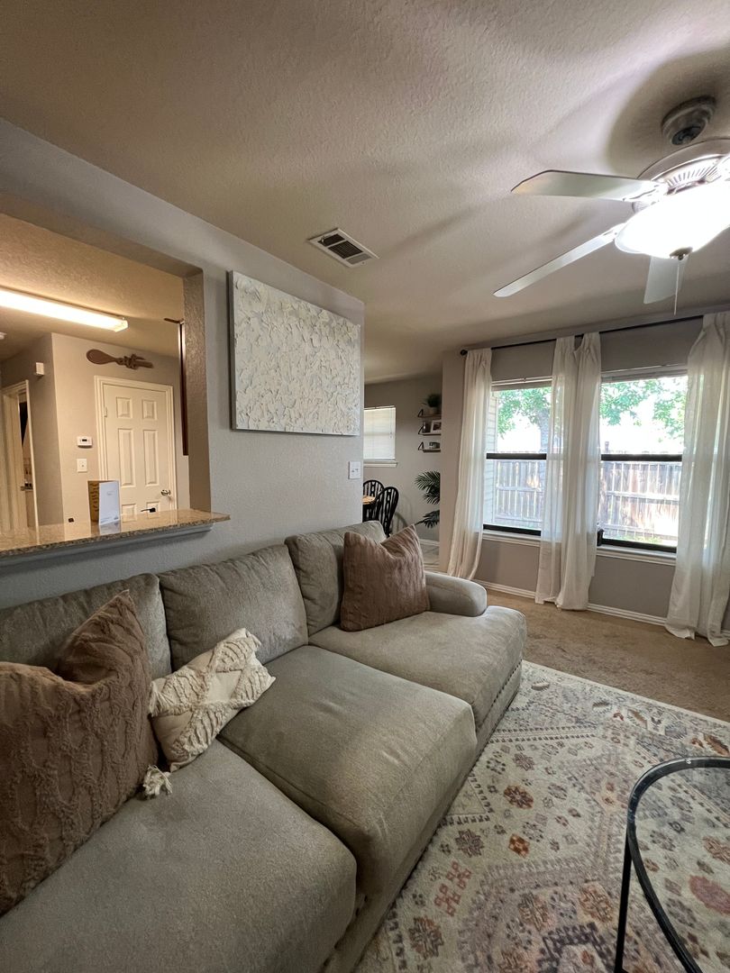 Cozy to the max! This homey 2 bedroom, 2 bathroom unit offers a split bedroom arrangement with each bedroom and bathroom on either end of the home to provide ample privacy! A large backyard, 1 car garage, dedicated utility room, eat-in kitchen and lots of cabinet space are just a few highlights on this property! Reach out to set up a tour!