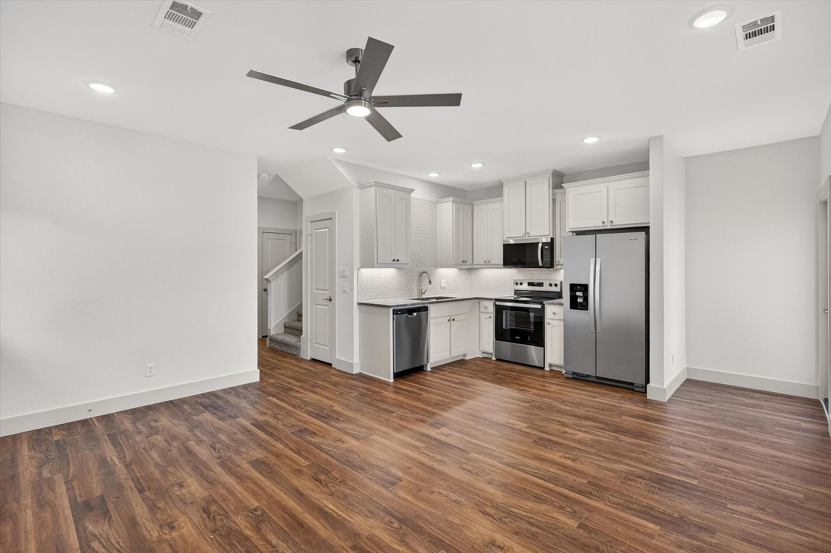 Discover this well-appointed 3-bedroom, 2-bath home in Mansfield, TX, featuring an open floor plan that connects the main living spaces for easy flow. The kitchen offers stainless steel appliances and granite countertops, and the home includes a refrigerator and washer/dryer for convenience. The living area is located on the main level, while the primary and guest bedrooms plus a game room are upstairs. Outside, enjoy a side-fenced yard with a patio. Situated near downtown Mansfield with restaurants and shopping, this residence balances comfort and location.