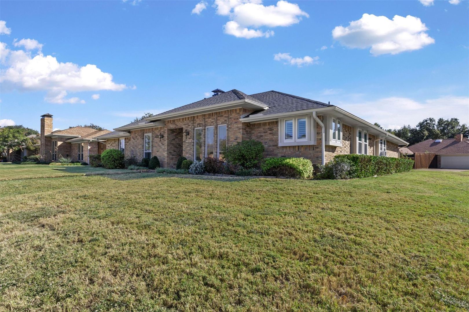 Spacious and well-maintained home situated on a large corner lot in a desirable Carrollton neighborhood. Thoughtfully updated and filled with natural light, this residence offers two generous living areas—perfect for entertaining or relaxing. The kitchen features granite countertops, crisp white cabinetry, and modern appliances. The primary suite includes dual vanities, two closets, and a private ensuite bath. Recent updates include engineered wood flooring and fresh interior paint in the main living area, adding a clean, modern touch. Outdoors, enjoy two distinct patio spaces and a tall nine-foot wood privacy fence that creates a private retreat for gatherings or quiet evenings. Conveniently located less than 1.5 miles from local schools and the Rosemeade Rainforest Aquatic Complex, with shopping, dining, parks, and major highways just minutes away. Move-in ready and beautifully updated, this home blends comfort, style, and convenience in one of Carrollton’s most sought-after areas.