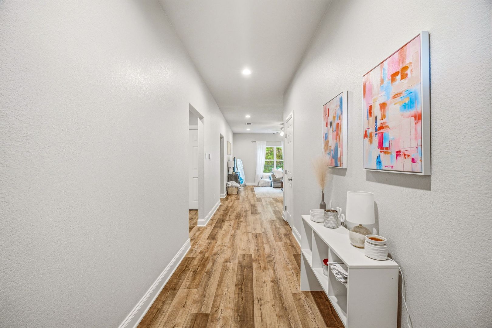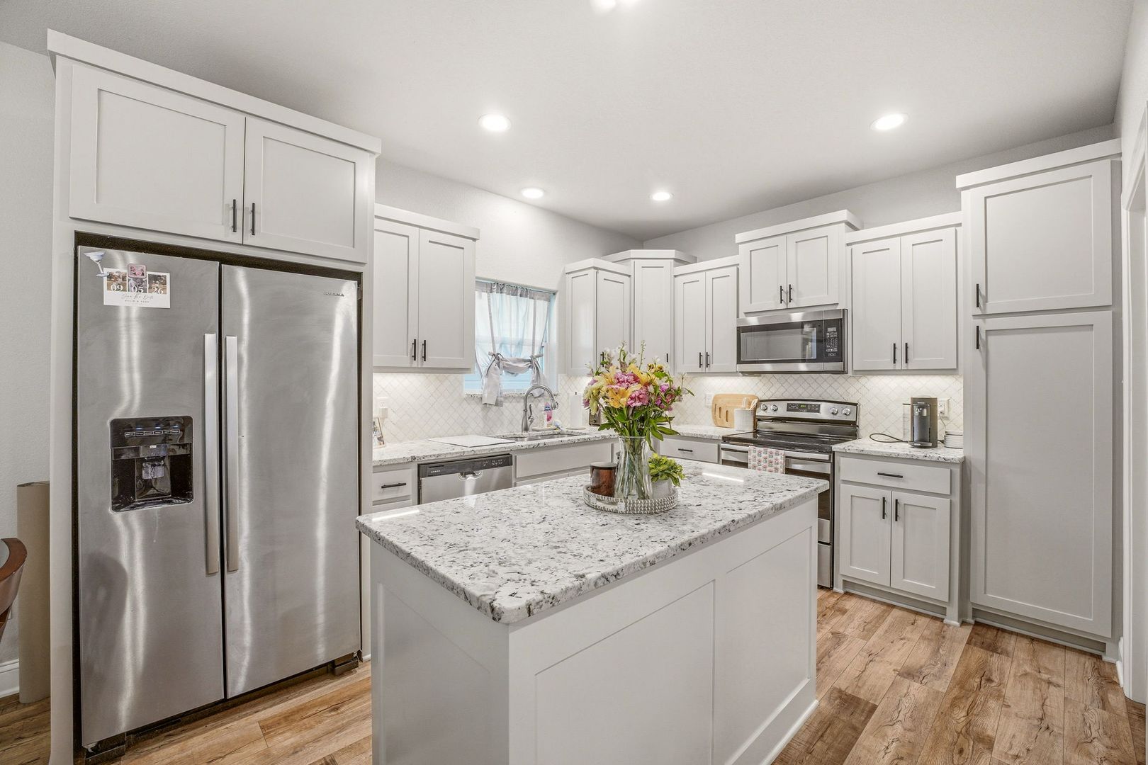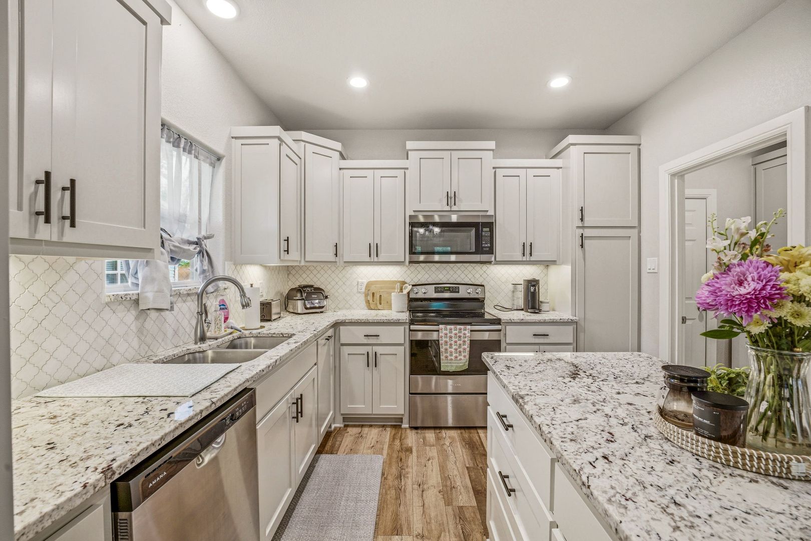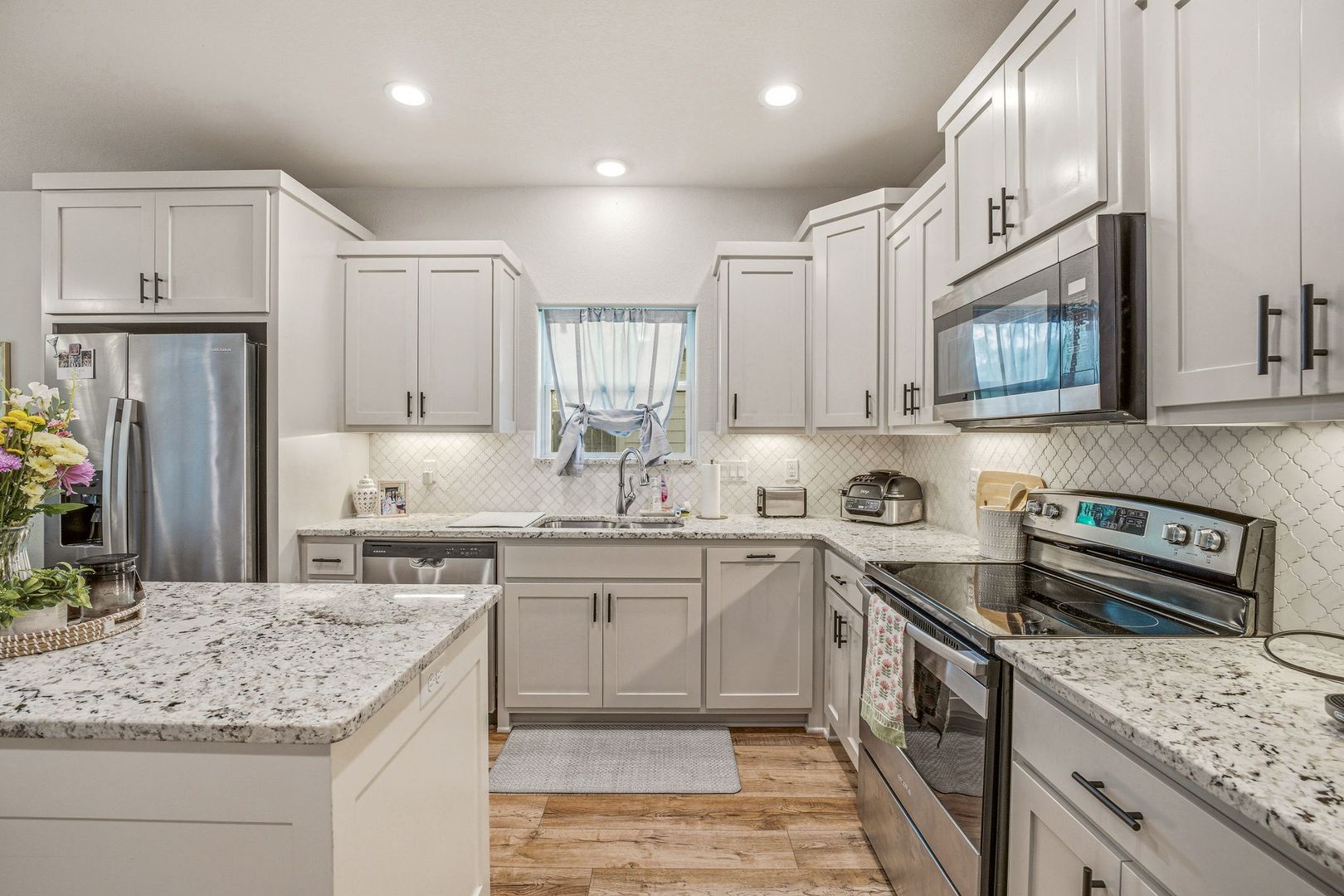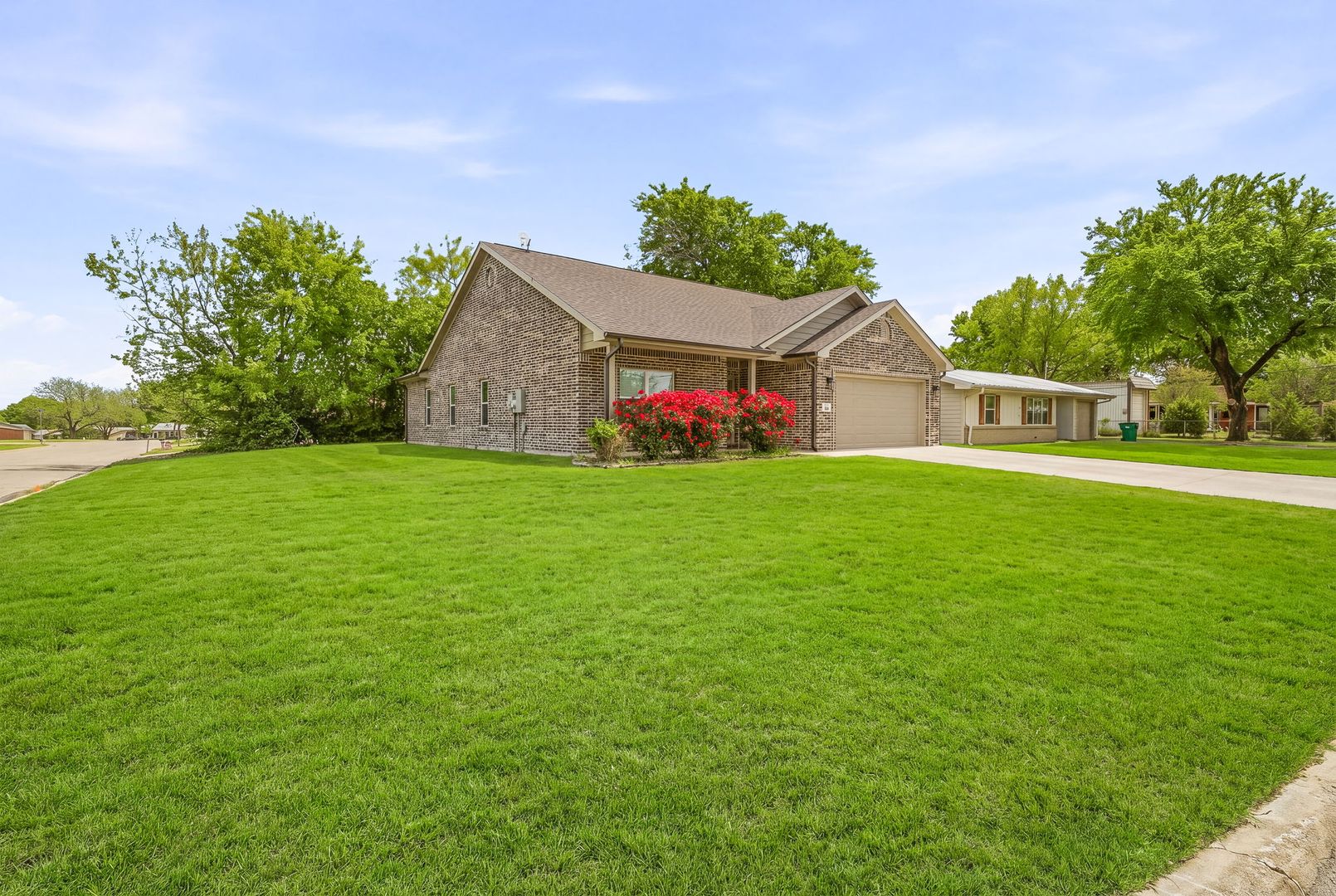 Stunning custom home on a corner lot! Check out this beautifully crafted brick on slab home. Offering 3 bedrooms, 2 bathrooms and a 2 car garage this home has every modern touch. Including stunning flooring throughout, an open concept living space, tile backsplash, dedicated laundry area and private back patio. Message us today to schedule a tour!